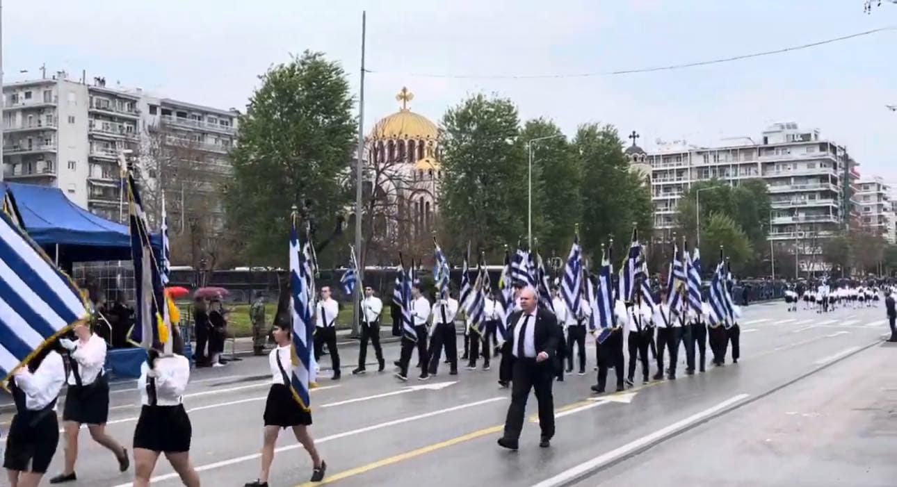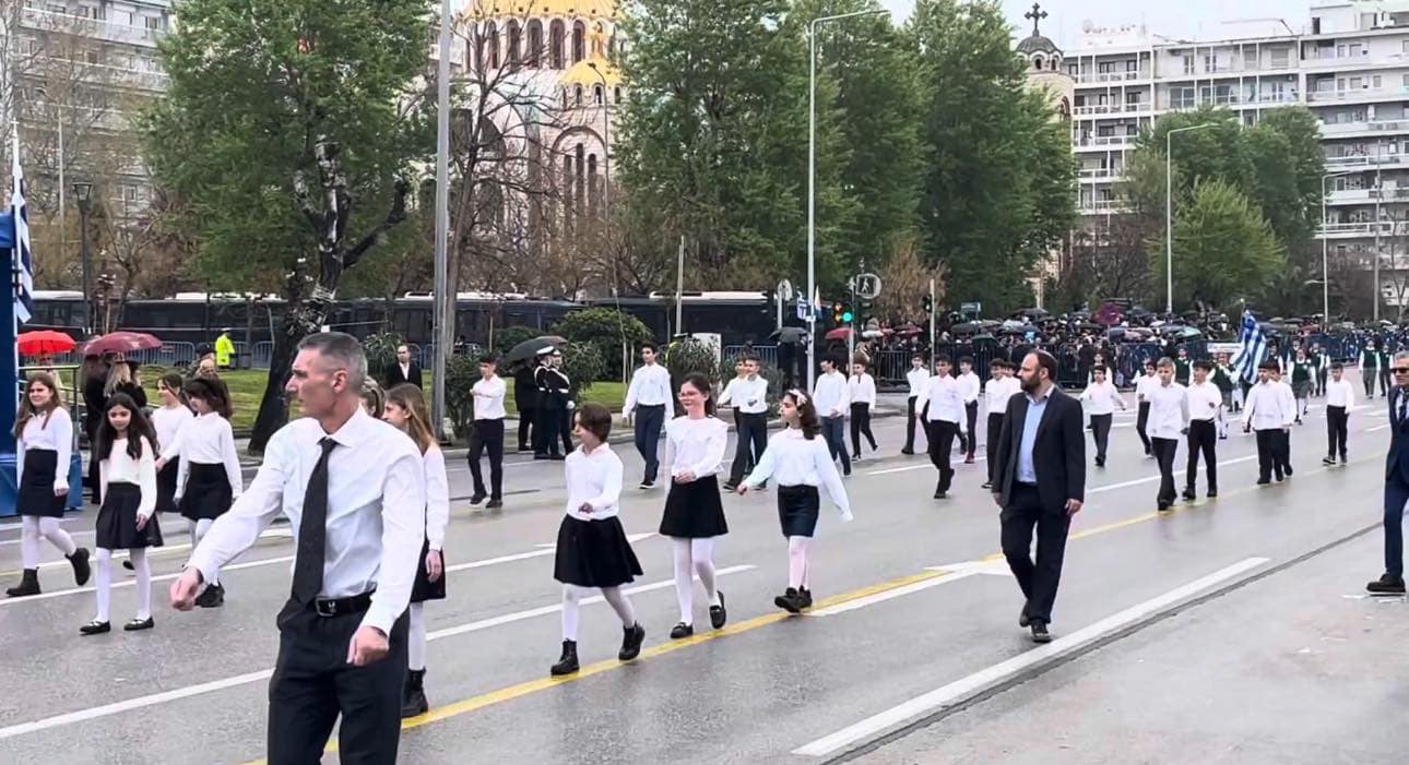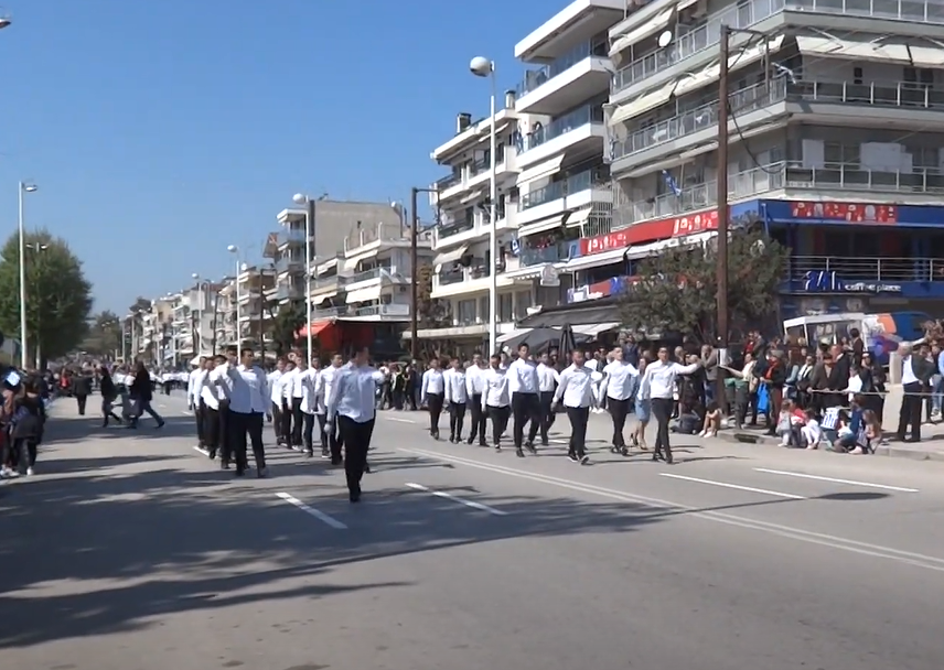 Λίγο μετά τις 12.00 ξεκίνησε στην παραλιακή Λεωφόρο Μεγάλου Αλεξάνδρου η παρέλαση των μαθητών, μελών λαογραφικών και πολιτιστικών συλλόγων, σωματείων, καθώς και τμημάτων των σωμάτων ασφαλείας και των ενόπλων δυνάμεων.