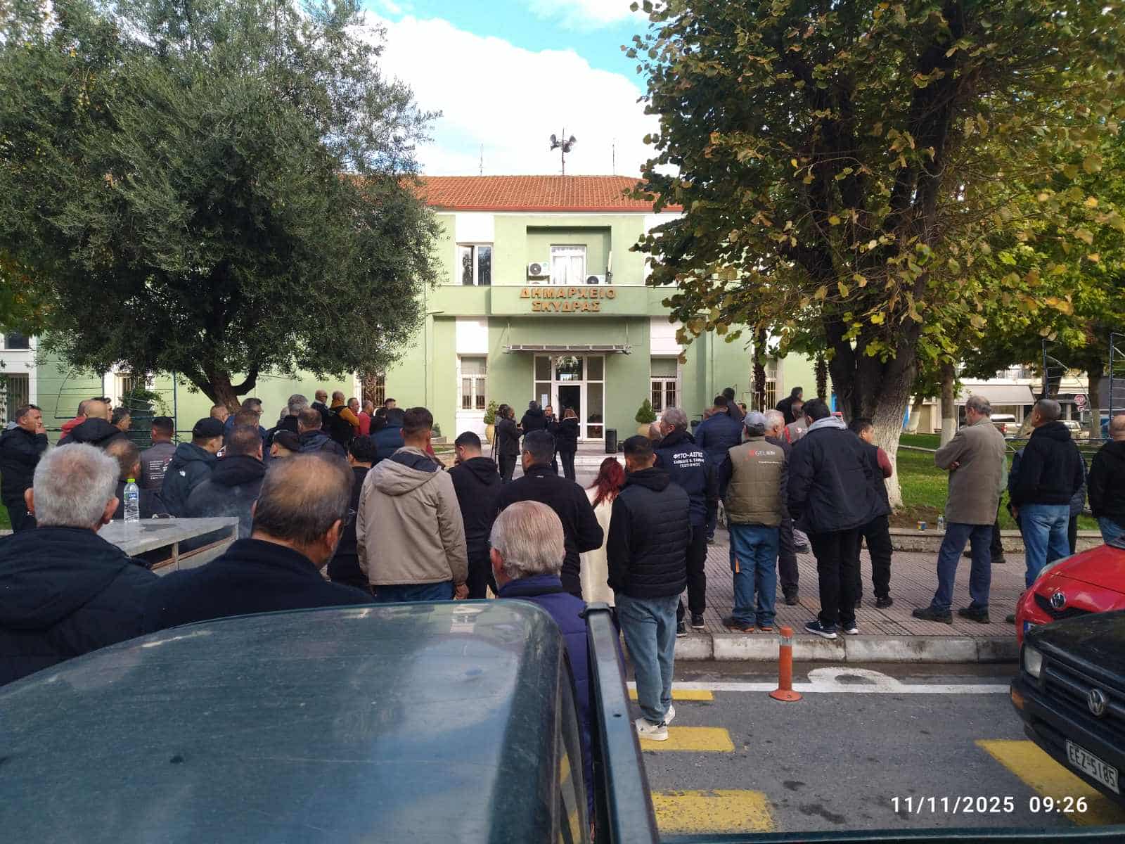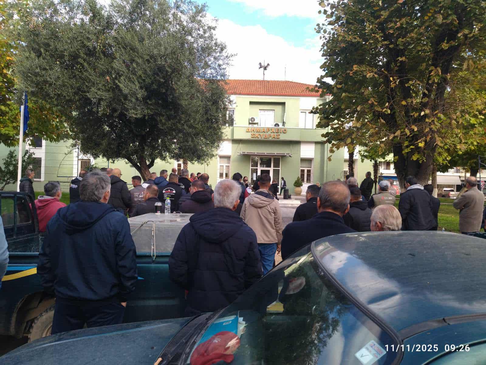 Μαζική η συγκέντρωση αγροτών στη Σκύδρα. Από νωρίς το πρωί συγκεντρώθηκαν στο Δημαρχείο και από εκεί κατευθύνθηκαν στα γραφεία των Βουλευτών στα Γιαννιτσά, όπου παρέδωσαν Ψήφισμα Διαμαρτυρίας.