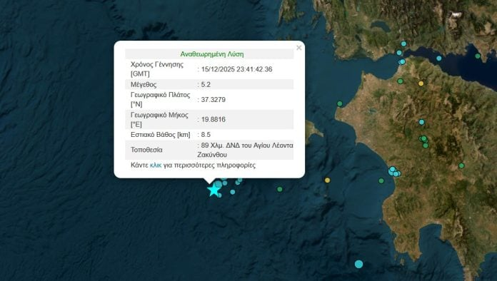 Σεισμική δόνηση μεγέθους 5,1 βαθμών της κλίμακας Ρίχτερ σημειώθηκε λίγο πριν τις 2 τα ξημερώματα της Τρίτης στα ανοιχτά της Ζακύνθου.