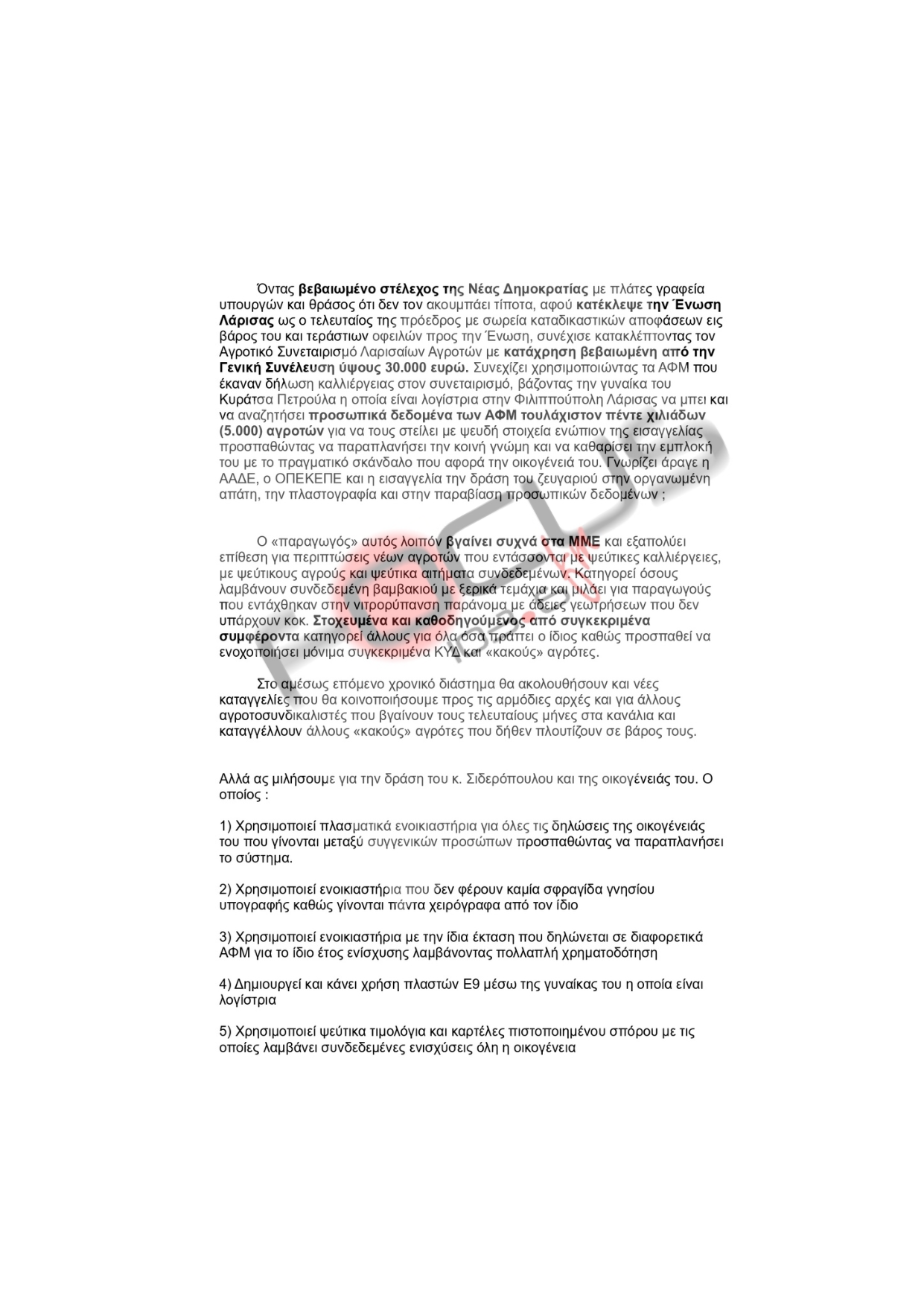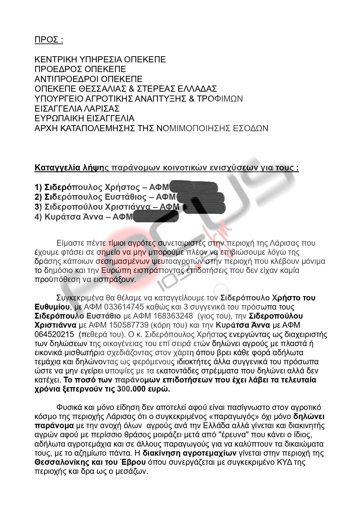 Την ίδια ώρα που εξελισσόταν αυτή η πρωτοφανής «επίθεση» on air, εστάλη αποκαλυπτικό έγγραφο το οποίο φωτογραφίζει τον ίδιο άνθρωπο ως «καταγγελόμενο λήψης παράνομων κοινοτικών επιδοτήσεων» με αποδέκτη μεταξύ άλλων…την ΚΕΝΤΡΙΚΗ ΥΠΗΡΕΣΙΑ ΤΟΥ ΟΠΕΚΕΠΕ!