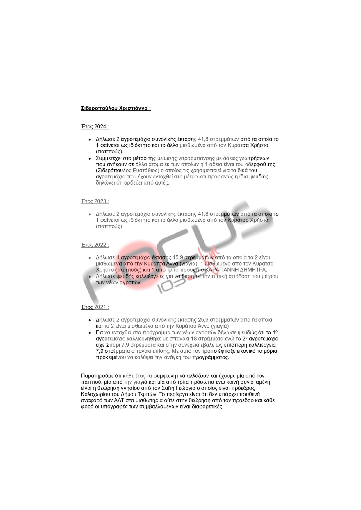 Ενα και μοναδικό αμείλικτο ερώτημα: Ο κ. Σιδερόπουλος που με τόσο μένος εξαπέλυσε τέτοια σφοδρή και θρασύτατη επίθεση στον άνθρωπο που ως επαγγελματίας έκανε απλά τη δουλειά του, το λειτούργημά του στην εκπομπή του, και με αντικειμενική προσέγγιση, θέλησε να δώσει βήμα στην δοκιμαζόμενη αγροτιά, είναι ο ίδιος που αναφέρεται στο έγγραφο – φωτιά ; Είναι ο ίδιος που απαξίωσε με την συμπεριφορά του όχι μόνο τον Γρηγόρη Σερέτη αλλά και ολόκληρο το ακροατήριο του Focus FM που άκουγε εμβρόντητο το θρασύτατο παραλήρημα του συγκεκριμένου «κυρίου»;