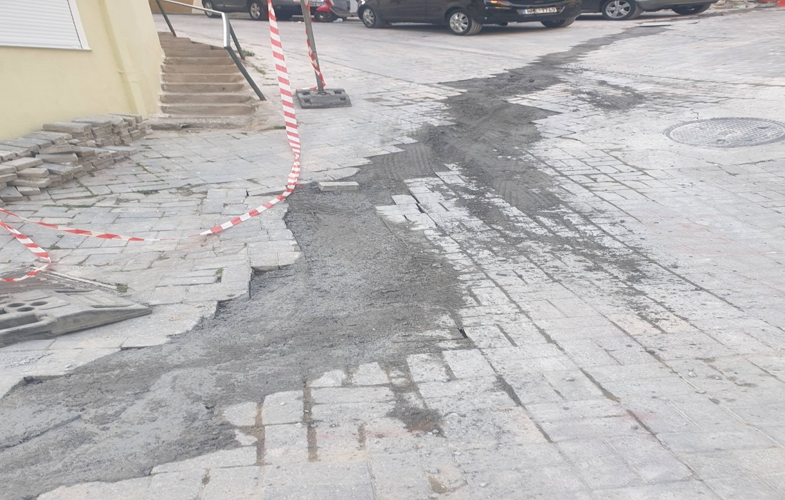 Ωστόσο κατά τη διάρκεια εργασιών για την εγκατάσταση οπτικών ινών, καταστράφηκε το υφιστάμενο λιθόστρωτο και μετά την ολοκλήρωση των εργασιών, η αποκατάσταση δεν έγινε με επανατοποθέτηση της πέτρας, αλλά με πρόχειρη επίστρωση τσιμέντου, με τρόπο ανομοιόμορφο και εμφανώς κακής ποιότητας.