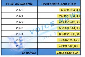 Γενικό σύνολο: 266.000.000 ευρώ (255.847.999 € σύμφωνα με τα ακριβή στοιχεία του Υπουργείου + πρόσθετες δαπάνες).