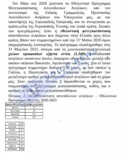 Επιπλέον, μέσω του προγράμματος εθελοντικής μετεγκατάστασης (Μάιος 2020 – Μάρτιος 2023) με ευρωπαϊκή χρηματοδότηση μεταφέρθηκαν σε άλλες ευρωπαϊκές χώρες 1.369 ασυνόδευτα ανήλικα.