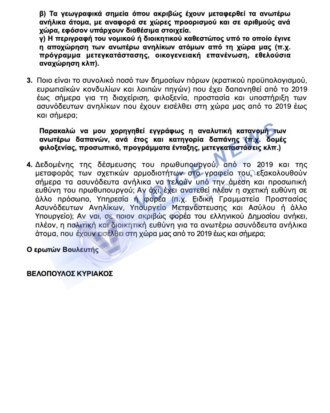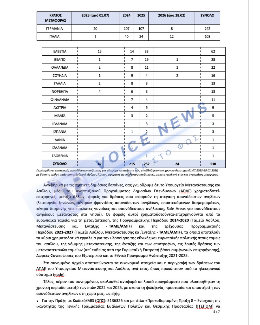 Το voicenews παρουσιάζει σήμερα αποκλειστικά την απάντηση που έδωσε το Υπουργείο Μετανάστευσης και Ασύλου στον πρόεδρο της Ελληνικής Λύσης Κυριάκο Βελόπουλο, για τα «ανήλικα ασυνόδευτα» που πέρασαν από την Ελλάδα από το 2020 μέχρι σήμερα!