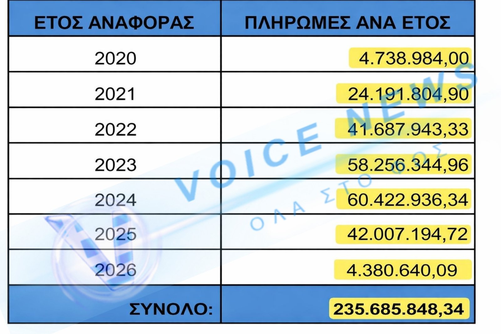 – Σύνολο βασικών δαπανών: 235.848.000 € περίπου
