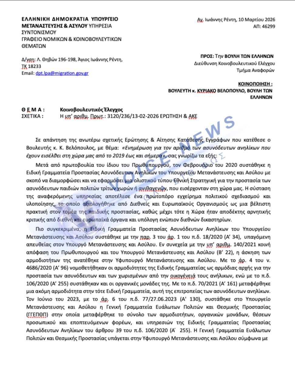 Για πρώτη φορά αποκαλύπτονται τα επίσημα στοιχεία για τα ασυνόδευτα ανήλικα που πέρασαν από την Ελλάδα από τον Φεβρουάριο του 2020 μέχρι και τις 31 Μαρτίου 2026.