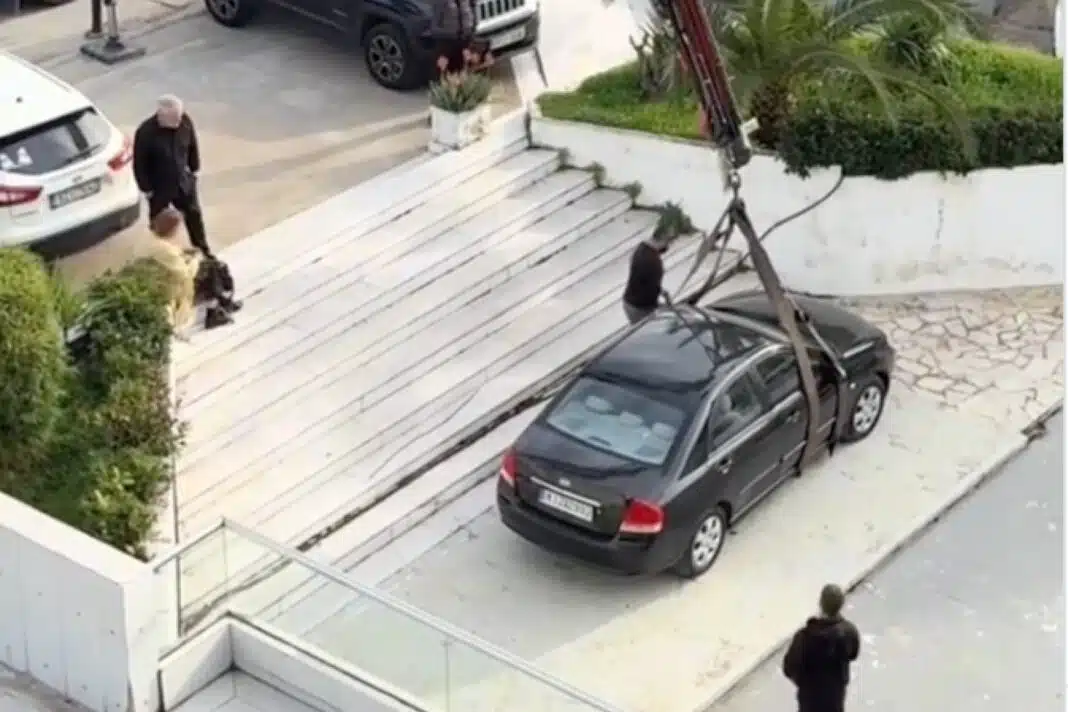 Μάλιστα, λόγω του πώς είναι διαμορφωμένος ο χώρος, η απομάκρυνση δεν μπορούσε να γίνει με συμβατικό τρόπο, με αποτέλεσμα ο γερανός να χρησιμοποιήσει ιμάντες για την ανύψωση του αυτοκινήτου.