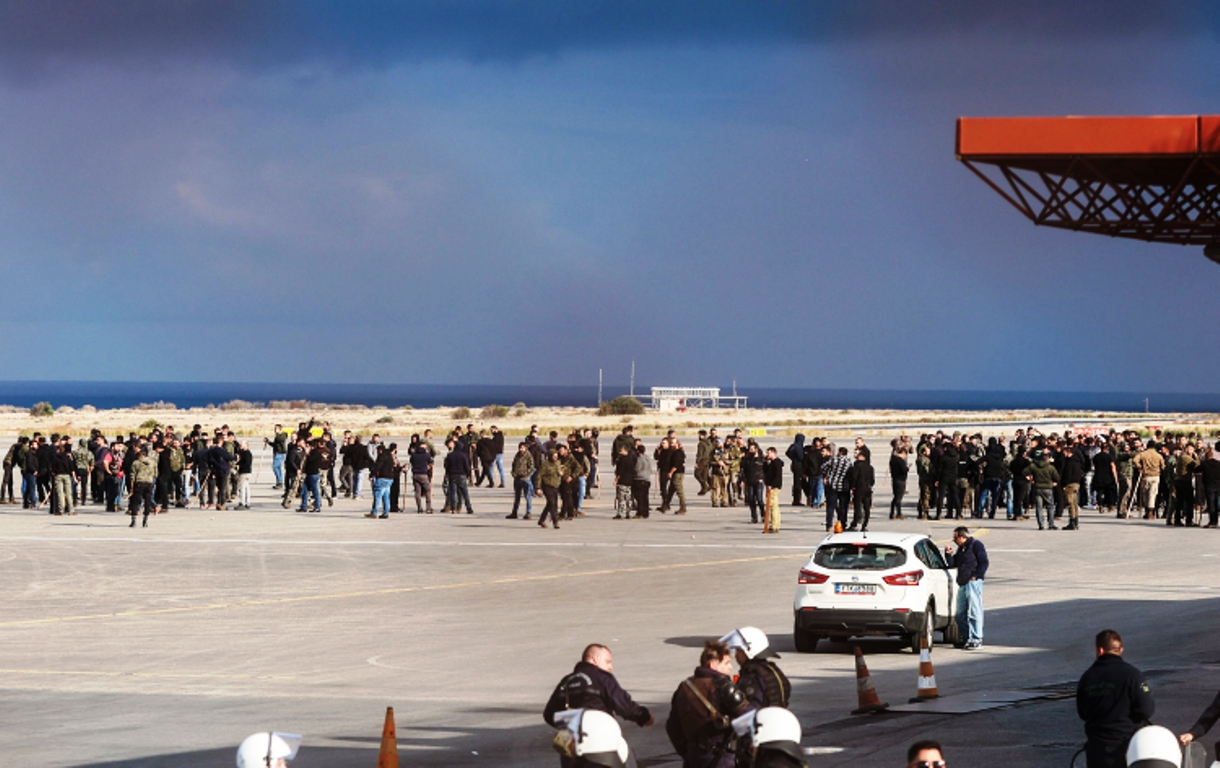 Πλήθος αγροτοκτηνοτρόφων, μελισσοκόμων και αλιέων, εξακολουθεί ωστόσο να βρίσκεται μέσα κι έξω από το κτίριο του αεροδρομίου «Ν.Καζαντζάκης», τονίζοντας ότι οι κινητοποιήσεις τους θα συνεχιστούν επ’ αόριστον.