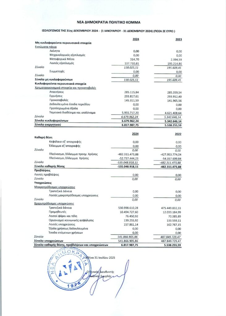 Συγκεκριμένα, οι συνολικές υποχρεώσεις του κυβερνώντος κόμματος φτάνουν τα 541.866.905,86 €, καταγράφοντας αύξηση κατά περίπου 54 εκατομμύρια ευρώ σε σχέση με το προηγούμενο έτος, όταν το συνολικό ποσό των οφειλών ανερχόταν σε 487.849.729,47 €.