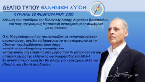 Ο κ. Μητσοτάκης αντί να «πανηγυρίζει» με «υπαγορευμένες» ανακοινώσεις, οφείλει να διαψεύσει ότι στην συμφωνία με τη Chevron περιλαμβάνονται όροι, όπως «απώλεια οριοθετημένης περιοχής» και «αποχώρηση της εταιρείας από μέρος που θα μπορούσε να μην αποτελεί μέρος της ελληνικής υφαλοκρηπίδας και ΑΟΖ»! Σε αντίθετη περίπτωση δεν θα μιλάμε για «επιτυχία», αλλά για απάτη και εθνική μειοδοσία».