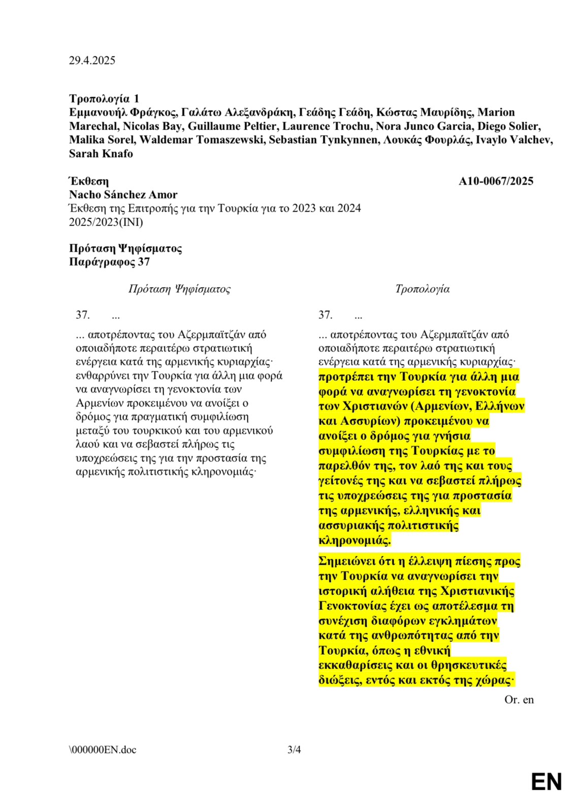 Αν την είχαν στηρίξει όλοι οι Έλληνες Ευρωβουλευτές, σήμερα θα συμπεριλαμβανόταν στην Έκθεση για την Τουρκία, που αποτελεί το πλέον ουσιαστικό και ενδεδειγμένο έγγραφο για το θέμα, εκπληρώνοντας έναν εθνικό στόχο.