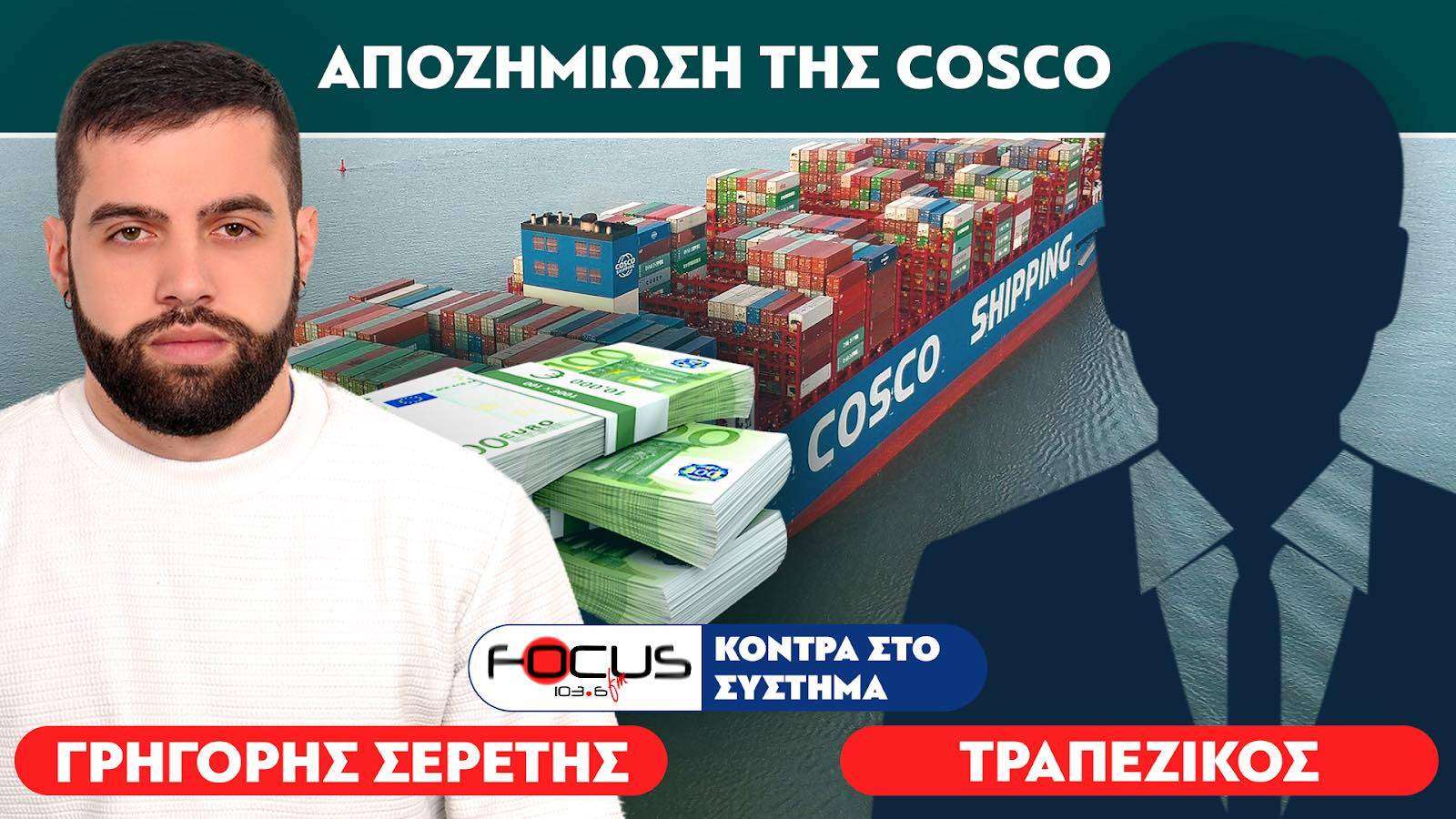 Στις απαιτήσεις που έχει η COSCO εναντίον από το ελληνικό δημόσιο και τον ΟΣΕ και οι οποίες μπορεί να φτάσουν σε δεκάδες δισεκατομμύρια ευρώ μίλησε στον Focuς FM 103.6 και την εκπομπή “Κόντρα στο Σύστημα” με τον ψυχολόγο Γρηγόρη Σερέτη ο γνωστός στους ακροατές της εκπομπής Δημήτρης με το προσωνύμιο “Τραπεζικός”.