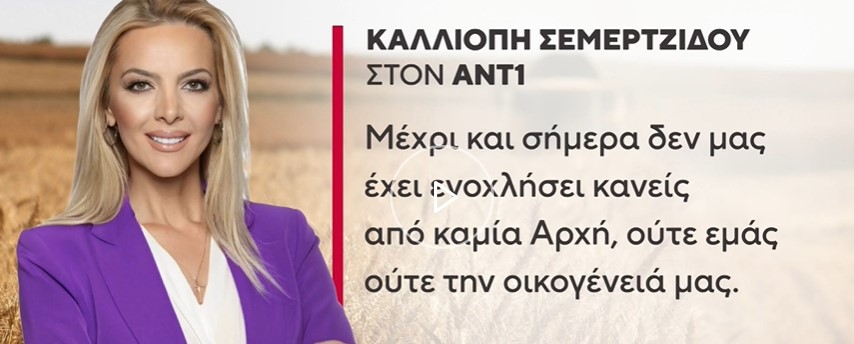 Στον ΑΝΤ1 χθες Τετάρτη η Καλλιόπη Σεμερτζίδου ανέφερε πως: