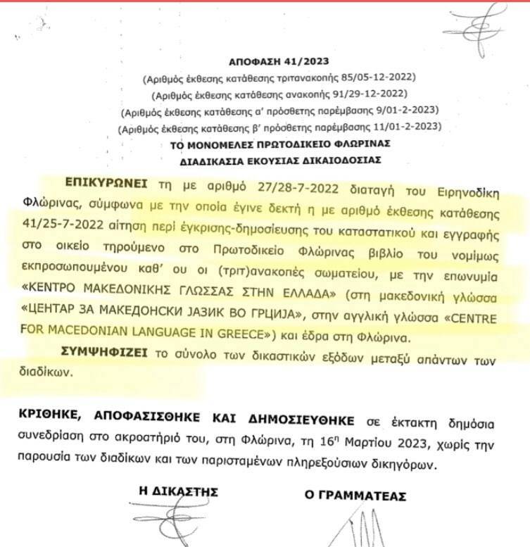 Το Πρωτοδικείο Φλώρινας απέρριψε τις ενστάσεις για τη δημιουργία Κέντρου «μακεδονικής» γλώσσας στη Φλώρινα και επικύρωσε το καταστατικό του!