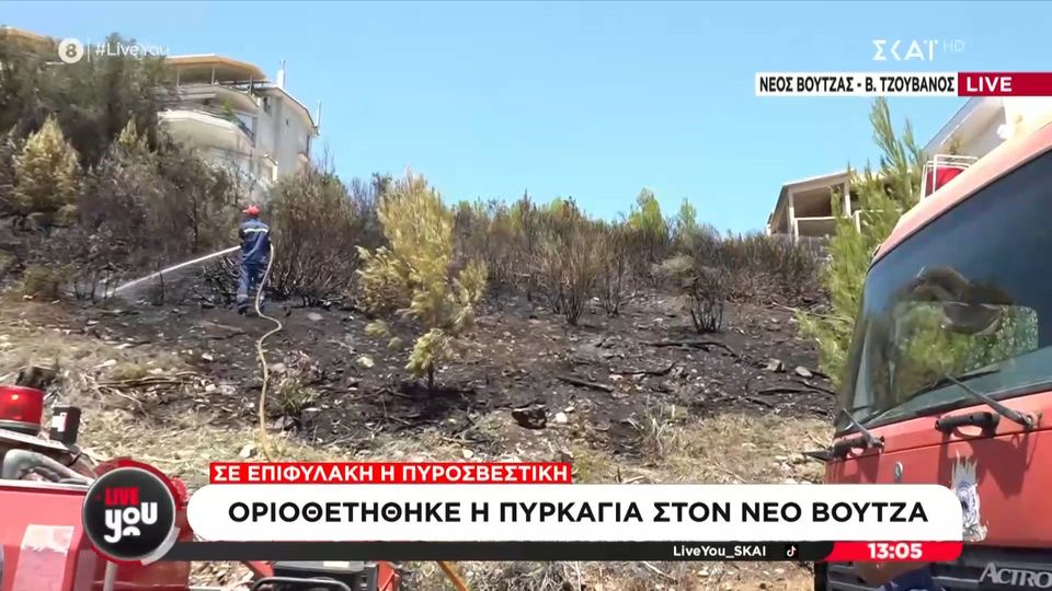 Φωτιά ξέσπασε νωρίτερα το μεσημέρι (23.06.2025) στον Νέο Βουτζά, με τις πυροσβεστικές δυνάμεις να σπεύδουν στο σημείο για να θέσουν υπό έλεγχο τις φλόγες.