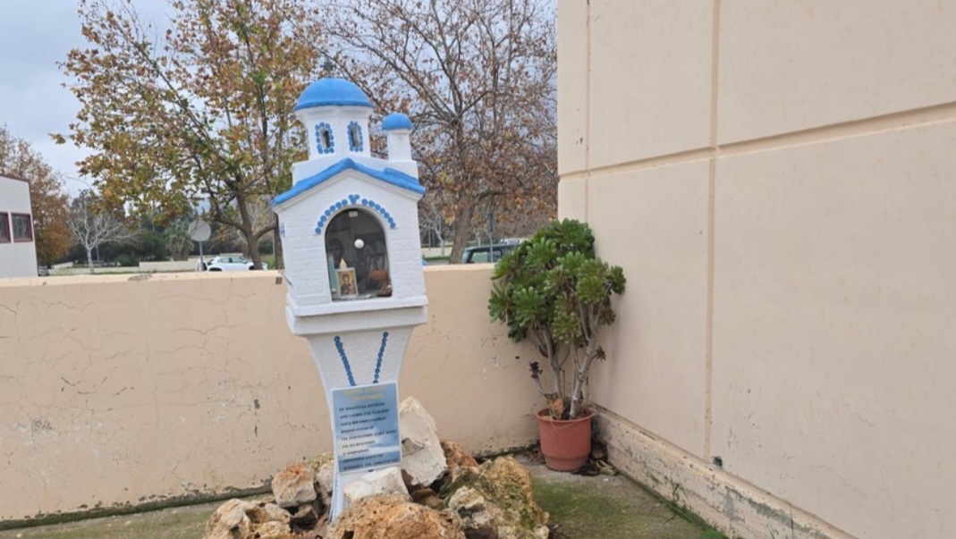 Γενικό Νοσοκομείο Χανίων: Εκκλησάκι στο σημείο που ήταν η σκηνή των υγειονομικών εις μνήμην αγώνος υγειονομικών