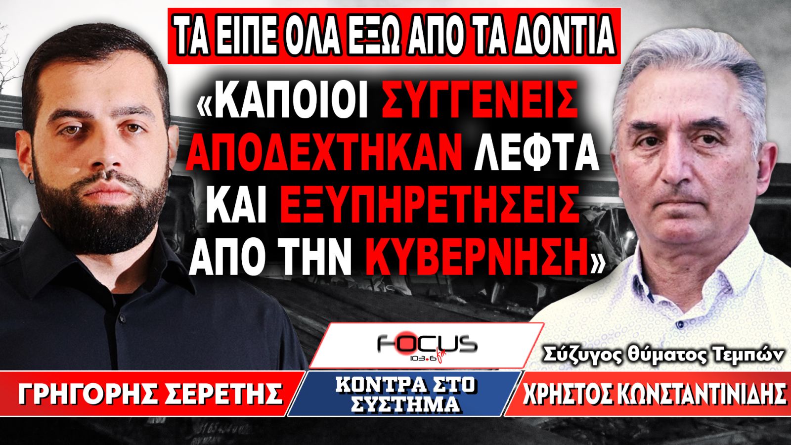 Στο επίκεντρο της συζήτησης βρέθηκε η υπόθεση της διαχείρισης του εγκλήματος των Τεμπών, με αιχμές για πολιτικά πρόσωπα, για δικαστικές καθυστερήσεις, αλλά και για μια συνολική εικόνα ατιμωρησίας που, σύμφωνα με τον καλεσμένο, χαρακτηρίζει τη χώρα εδώ και δεκαετίες. Ιδιαίτερη αίσθηση προκάλεσε η αναφορά ότι η υπόθεση «σέρνεται» μέσα από αλλεπάλληλους εισαγγελείς και διαδικασίες, χωρίς ουσιαστική πρόοδο, ενώ κρίσιμα στοιχεία είτε δεν έχουν αναδειχθεί είτε, όπως καταγγέλλεται, έχουν εξαφανιστεί ή δεν αξιοποιούνται επαρκώς.