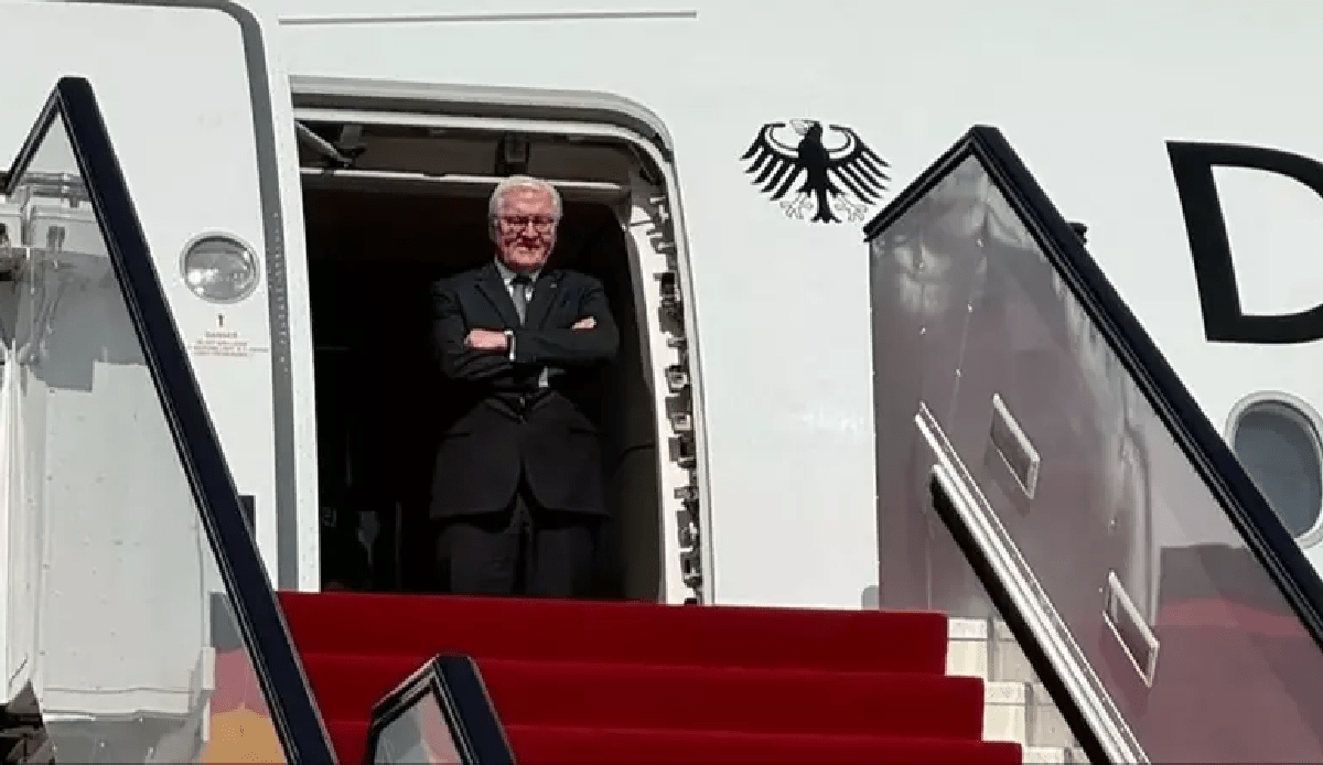 Με τα χέρια σταυρωμένα, ο Πρόεδρος της Γερμανίας Φρανκ Βάλτερ Στάινμαϊερ στεκόταν όρθιος μπροστά στην πόρτα του κυβερνητικού γερμανικού αεροσκάφους μέχρι τελικά να έρθει να τον υποδεχθεί και τον χαιρετήσει ο Υπουργός Εξωτερικών του Κατάρ, Σουλτάνος Μπιν Σαάντ Αλ Μουραϊκί.
