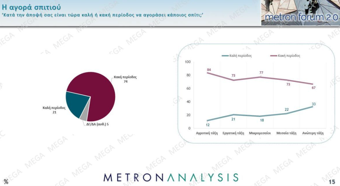 Την ίδια στιγμή, η αγορά κατοικίας γίνεται εφιάλτης. Το 74% πιστεύει ότι είναι κακή εποχή για αγορά σπιτιού.
