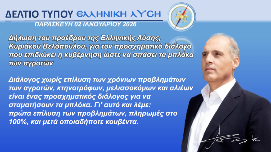 «Διάλογος χωρίς επίλυση των χρόνιων προβλημάτων των αγροτών, κτηνοτρόφων, μελισσοκόμων και αλιέων είναι ένας προσχηματικός διάλογος για να σταματήσουν τα μπλόκα. Γι’ αυτό και λέμε: πρώτα επίλυση των προβλημάτων, πληρωμές στο 100%, και μετά οποιαδήποτε κουβέντα».