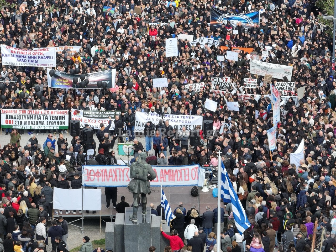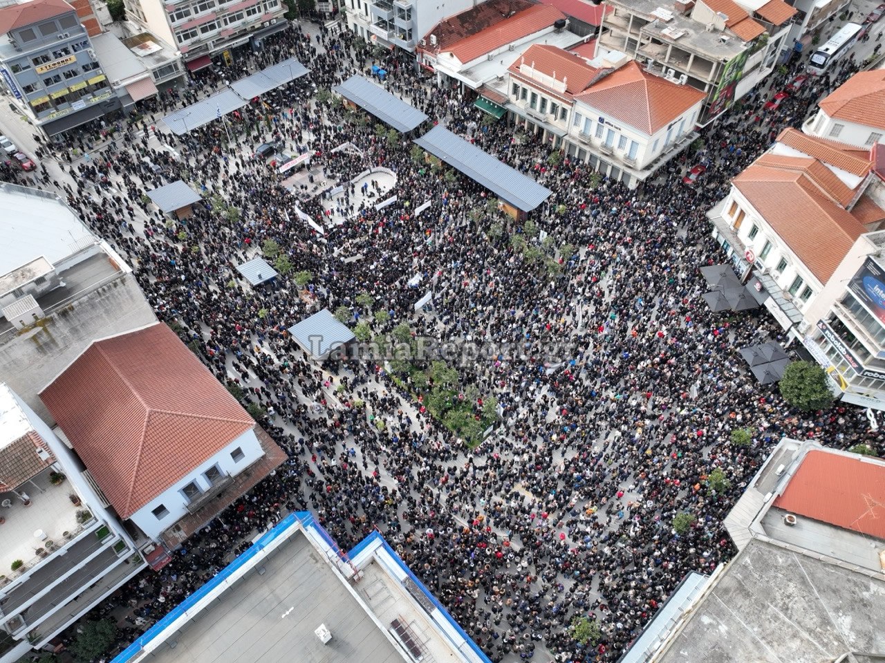 Λαμία: Χιλιάδες κόσμου στο κέντρο της πόλης στο συλλαλητήριο για τα Τέμπη