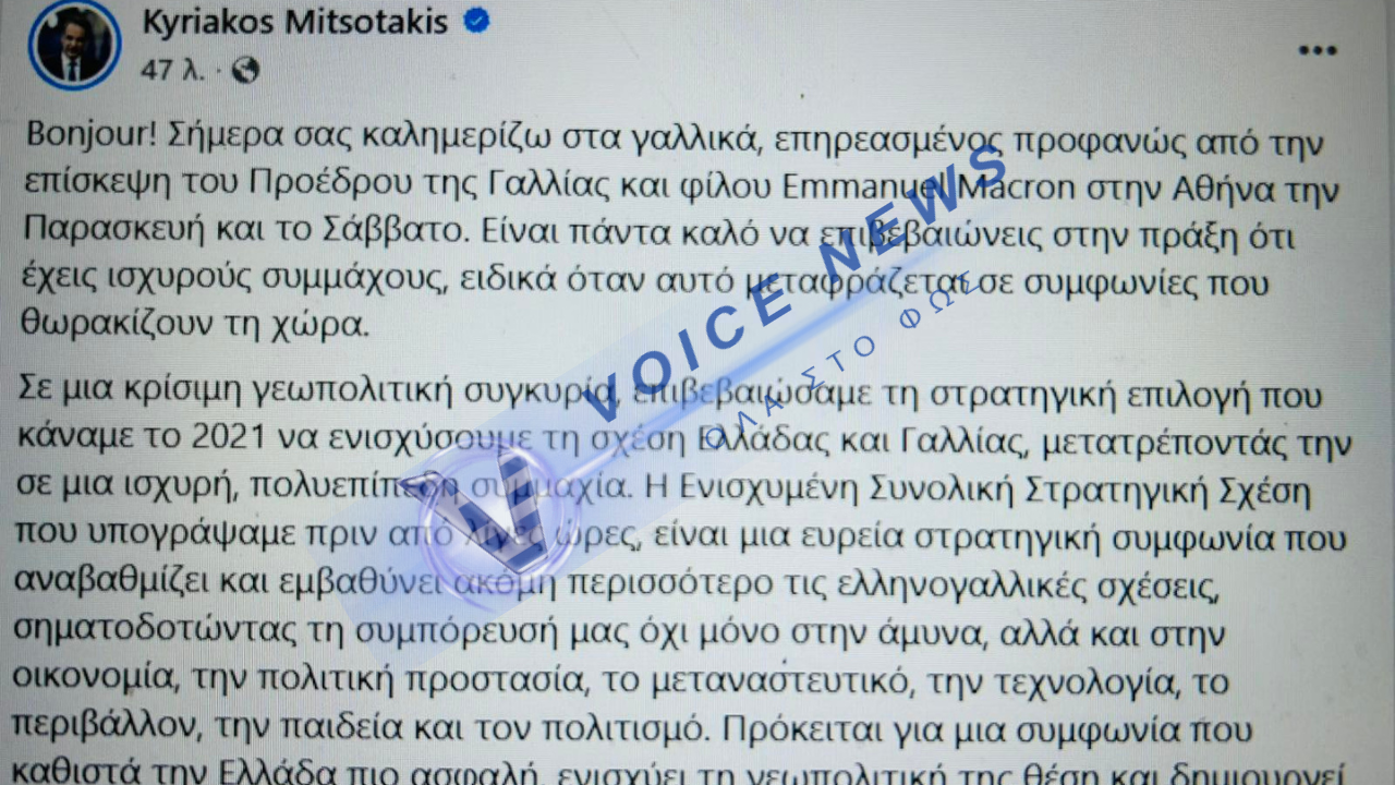 Ο Πρωθυπουργός μάς καλημέρισε γαλλικά αυτή την Κυριακή, επηρεασμένος από τη λάμψη του Εμανουέλ Μακρόν και τη σημειολογία των εξοπλιστικών συμφωνιών. Όμως, πίσω από τα γυαλιστερά καταστρώματα των φρεγατών και τις αναφορές στην «αυτόνομη Ευρώπη», η εβδομαδιαία ανασκόπηση στο Facebook αποκαλύπτει μια κυβέρνηση που επιχειρεί να βαφτίσει το ψίχουλο «γεύμα» και τη σιωπή «στρατηγική».