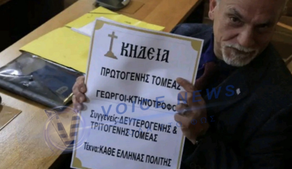 Viral η φωτογραφία με τον Βουλευτή της Ελληνικής Λύσης Κώστα Μπούμπα που πήγε στην εξεταστική επιτροπή κρατώντας κηδειόχαρτο για τον πρωτογενή τομέα.