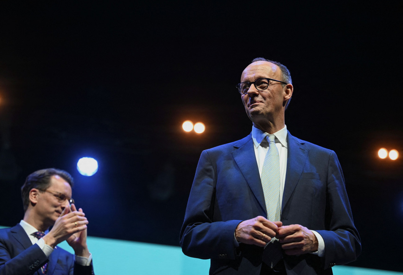 Ο Φρίντριχ Μερτς επέστρεψε, έπειτα από ώρες στη σκηνή που έχει στηθεί στα κεντρικά του Χριστιανοδημοκρατικού Κόμματος (CDU) στο Βερολίνο, εν μέσω επευφημιών και υπό τους ήχους δυνατής μουσικής.