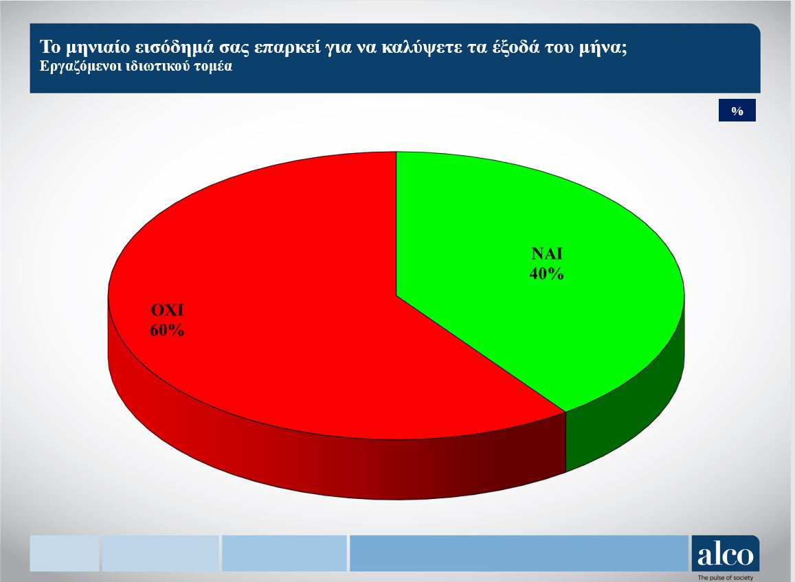 Για έξι στους δέκα μισθωτούς του ιδιωτικού τομέα, τα χρήματα τελειώνουν πριν βγει ο μήνας, επιβεβαιώνει νέα έρευνα της Αlco για τη ΓΣΕΕ.