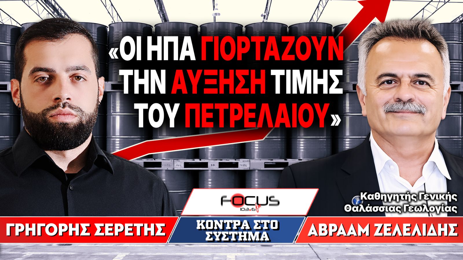 Στην εκπομπή του Γρηγόρη Σερέτη «Κόντρα στο Σύστημα» στον Focus FM 103,6 και ΜΑΧΗ FM 99,8 – τα μόνα πατριωτικά ραδιόφωνα – βρέθηκε σήμερα καλεσμένος ο Αβραάμ Ζελελίδης, καθηγητής γεωλογίας και ειδικός στους υδρογονάνθρακες, και μίλησε για τον ενεργειακό πόλεμο που εξελίσσεται ανάμεσα σε Ηνωμένες Πολιτείες, Ιράν, Ισραήλ, Ρωσία και Κίνα, αλλά και για τον ρόλο της Ελλάδας στον παγκόσμιο ενεργειακό χάρτη.