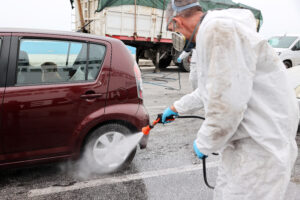 Πρωτόγνωρες εικόνες με ψεκασμούς οχημάτων στο λιμάνι