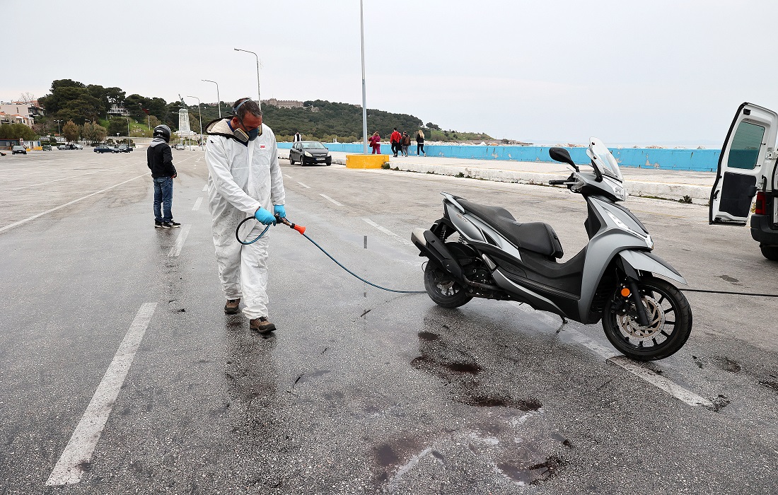 Μάλιστα αίσθηση προκαλούν εικόνες με ψεκασμούς οχημάτων και μεταφορικών Μέσων στο λιμάνι της Μυτιλήνης για την αποφυγή εξάπλωσης της νόσου.