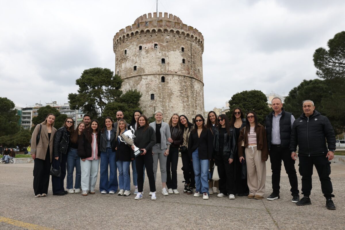 Οι Κυπελλούχες Ελλάδος φωτογραφήθηκαν με το τρόπαιο στο εμβληματικό σημείο της Θεσσαλονίκης, συνεχίζοντας μία συνήθεια που ακολουθείται τα τελευταία χρόνια από τα τμήματα του συλλόγου μετά από σημαντικές διακρίσεις.
