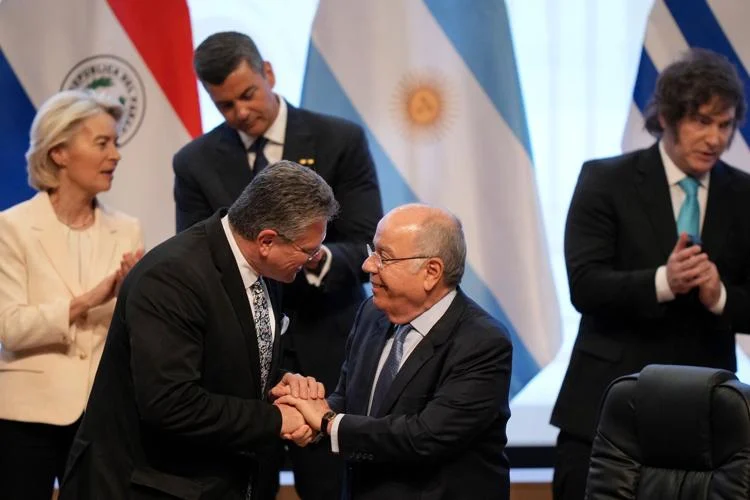 Τη συμφωνία – ταφόπλακα για τους βιοπαλαιστές αγρότες, ελεύθερου εμπορίου μεταξύ της Ευρωπαϊκής Ένωσης και της Mercosur (Αργεντινή, Βραζιλία, Παραγουάη, Ουρουγουάη) υπέγραψαν στην Ασουνσιόν σήμερα η Ούρσουλα φον ντερ Λάιεν και του Αντόνιο Κόστα.