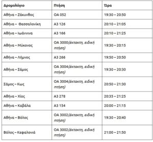 Ειδικότερα, το Μεγάλο Σάββατο το πρόγραμμα των προγραμματισμένων και έκτακτων πτήσεων της AEGEAN και της Olympic Air για τη μεταφορά του Αγίου Φωτός, διαμορφώνεται ως εξής:
