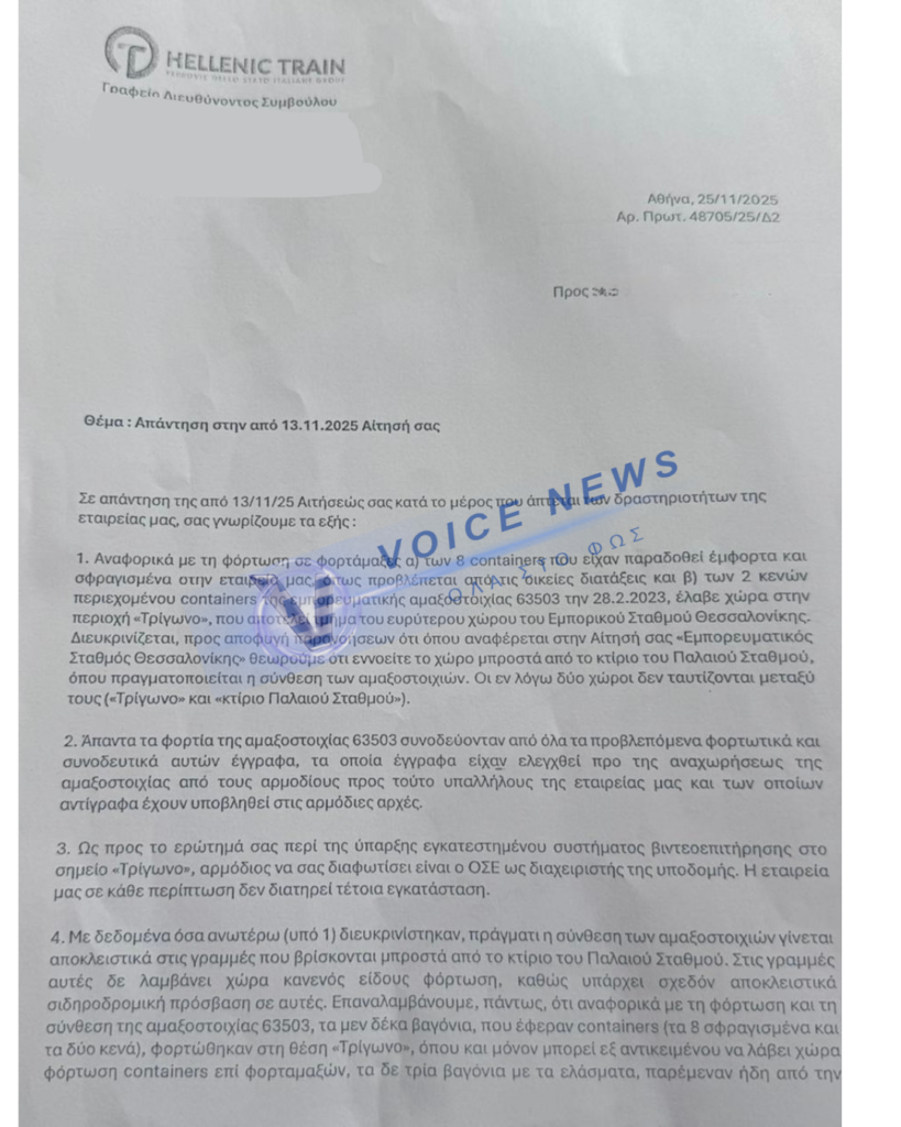 12.39 – Εξοργιστικό! Νέα ένσταση υποβάλλουν οι συνήγοροι των κατηγορουμένων προσπαθώντας να ακυρώσουν το κατηγορητήριο! Αυτό είναι το έγγραφο που κατέθεσε ο συνήγορος της interstar, Καπερνάρος, προκειμένου να ελαφρύνει την θέση του εντολέα του. Πρόκειται φυσικά για ένα έγγραφο μεταξύ της εταιρείας που εκπροσωπεί και της Hellenic Train Σύμφωνα με το οποίο η εταιρεία του δεν διατηρούσε κάμερες στον χώρο φόρτωσης της εμπορικής αμαξοστοιχίας!