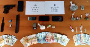 Πρόκειται για ημεδαπούς ηλικίας 70, 46, 30, 26 και 20 ετών σε βάρος των οποίων σχηματίσθηκε δικογραφία, κατά περίσταση, για παραβίαση των Νόμων περί ναρκωτικών και περί όπλων.