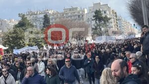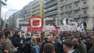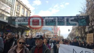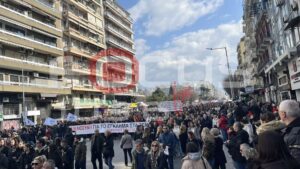 Χιλιάδες κόσμου στους δρόμους της Θεσσαλονίκης. Ο όγκος των διαδηλωτών αναμένεται να κατευθυνθεί προς τον Σιδηροδρομικό Σταθμό.