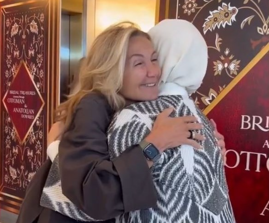 Εκεί η σύζυγος του Τούρκου προέδρου παρουσίασε τις παραδοσιακές τουρκικές φορεσιές και την τουρκική «προίκα». Η υποδοχή της Μαρέβας Μητσοτάκη από την πρώτη κυρία της Τουρκίας ήταν ιδιαίτερα θερμή, εγκάρδια, με τις δυο τους να αγκαλιάζονται σφιχτά, με πολύ ζέση και χαμόγελα.