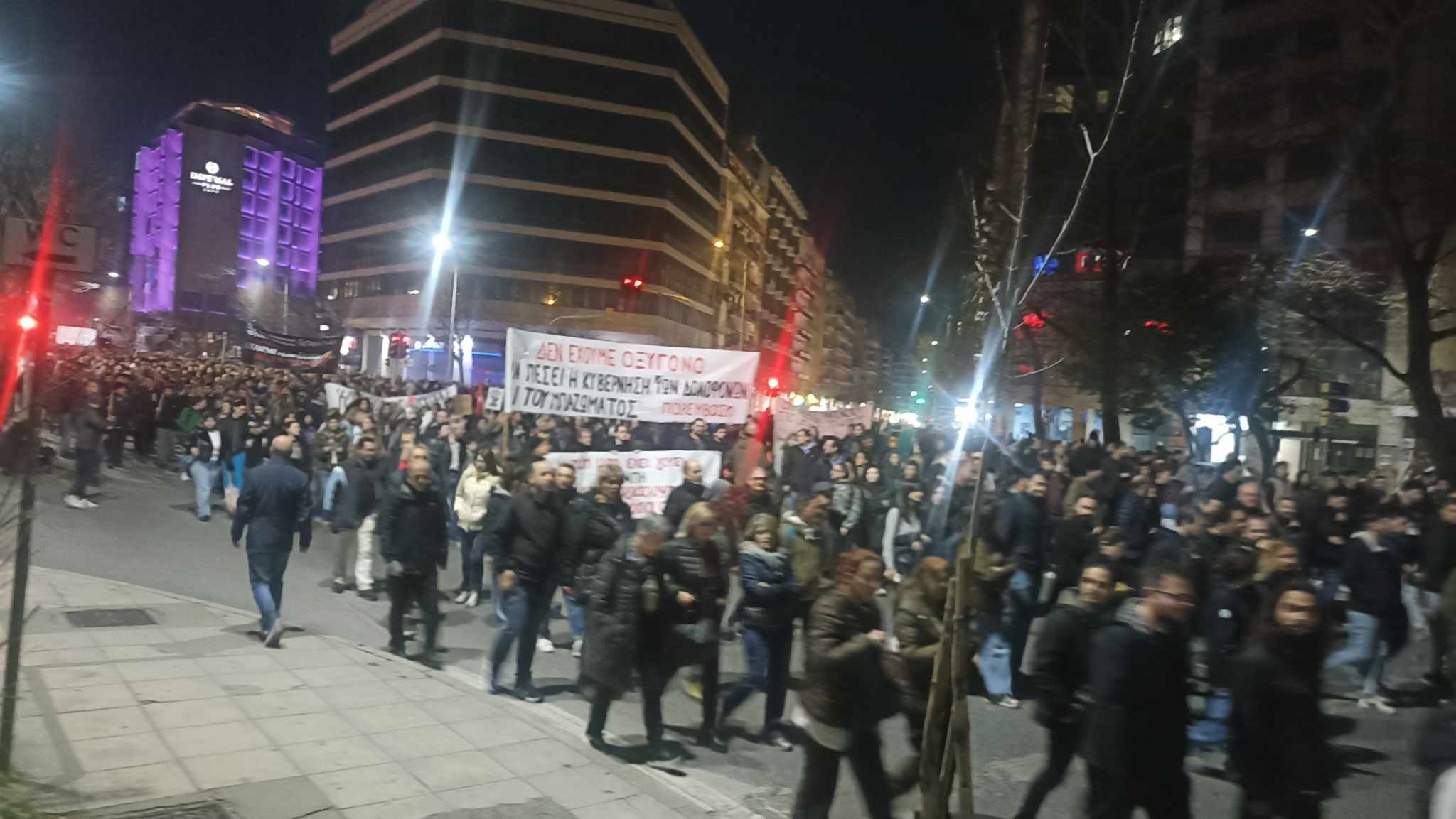 Οι διαδηλωτές ξεκίνησαν την συγκέντρωση στο Άγαλμα Βενιζέλου και στη συνέχεια με θα κατευθυνθούν προς τον Σιδηροδρομικό Σταθμό.